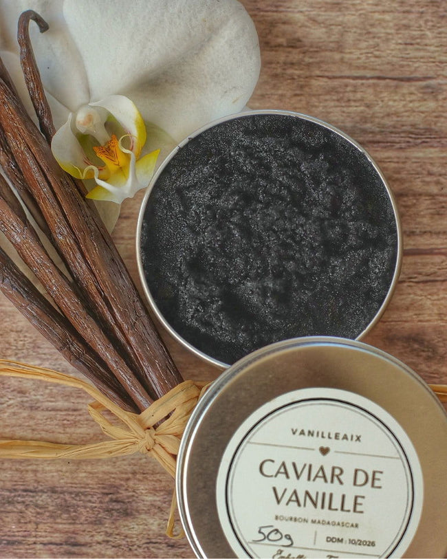 Vanilleaix vanilla caviar is made from Madagascar Bourbon vanilla pods, specially selected for their incomparable aromatic quality. During harvest, some pods, although rich in flavor, do not meet our aesthetic criteria. Rather than discarding them, we have chosen to enhance them by transforming them into vanilla caviar, to offer you a product that is just as authentic and intense.